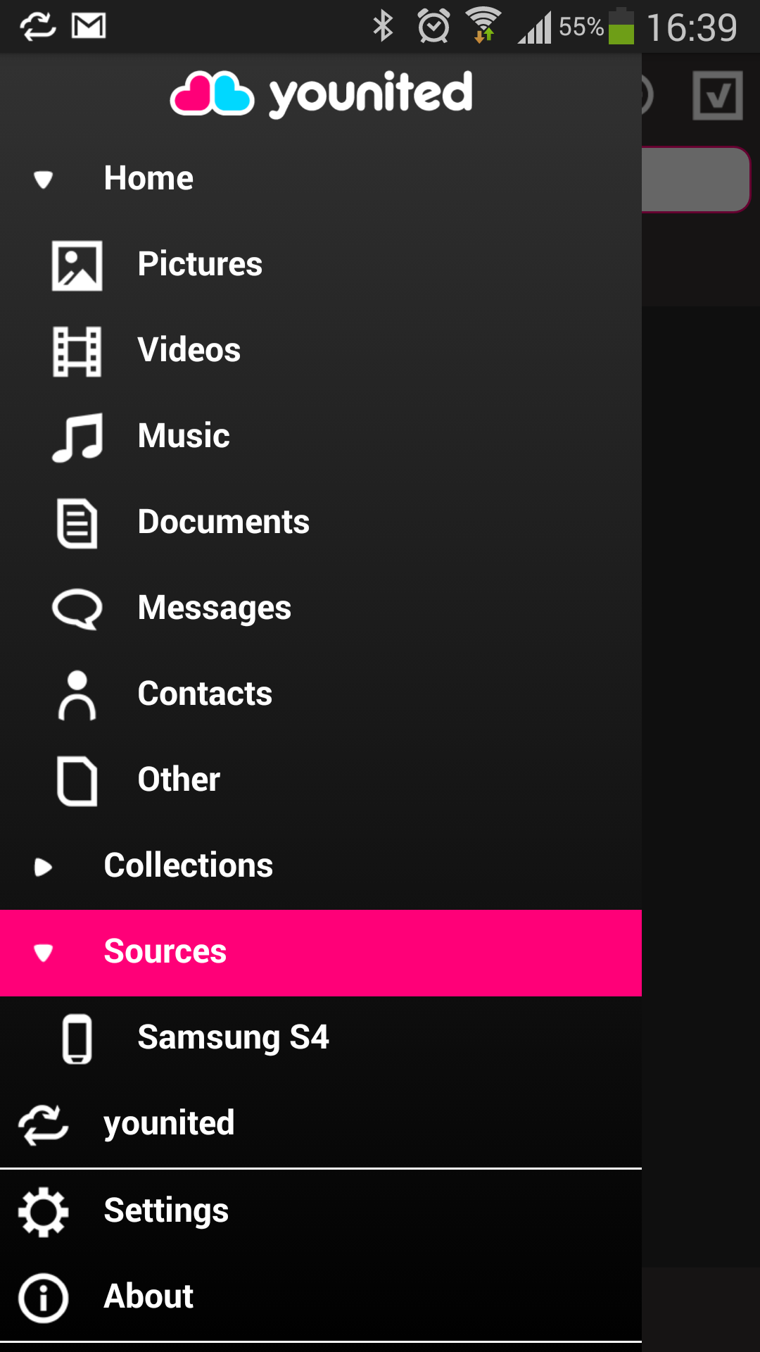 After that, younited starts to look through your phone for the content you’ve selected for upload, and starts syncing it to the cloud. You’ll be presented with a small progress bar in the roll-down menu (at least on Android), and younited will return you to the primary UI.