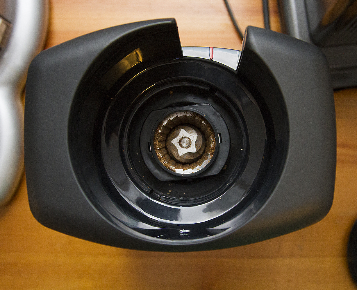 The second most important factor is the grinder. Because of the reasons I mentioned above, you need to grind the beans just before you start brewing. And you can’t really use any kind of grinder either, it needs to be a so called burr grinder, which is a grinder with toothed millstones that crush the bean between them. This produces a uniform particle size, which is crucial for even extraction. The other kind of grinders, the blade grinders (which look like a scaled down blender), just makes a mess of the whole thing, and you can’t reproduce the same grind size two times in a row. Just avoid them altogether. The price of proper burr grinders have also dropped a lot in the last few years, so they aren’t even that more expensive to buy. Above you see a picture of my new and shiny Wilfa grinder, which has proper conical burrs and is generally really nice. It also costs less than 100€ which really boggles the mind. I’ll post a review at some point when I get around to it. Below is a picture of the aforementioned burrs, a tad small for any serious use (i.e. espresso, that’s what the Macap M7 next to it is for) but works fine for home use.