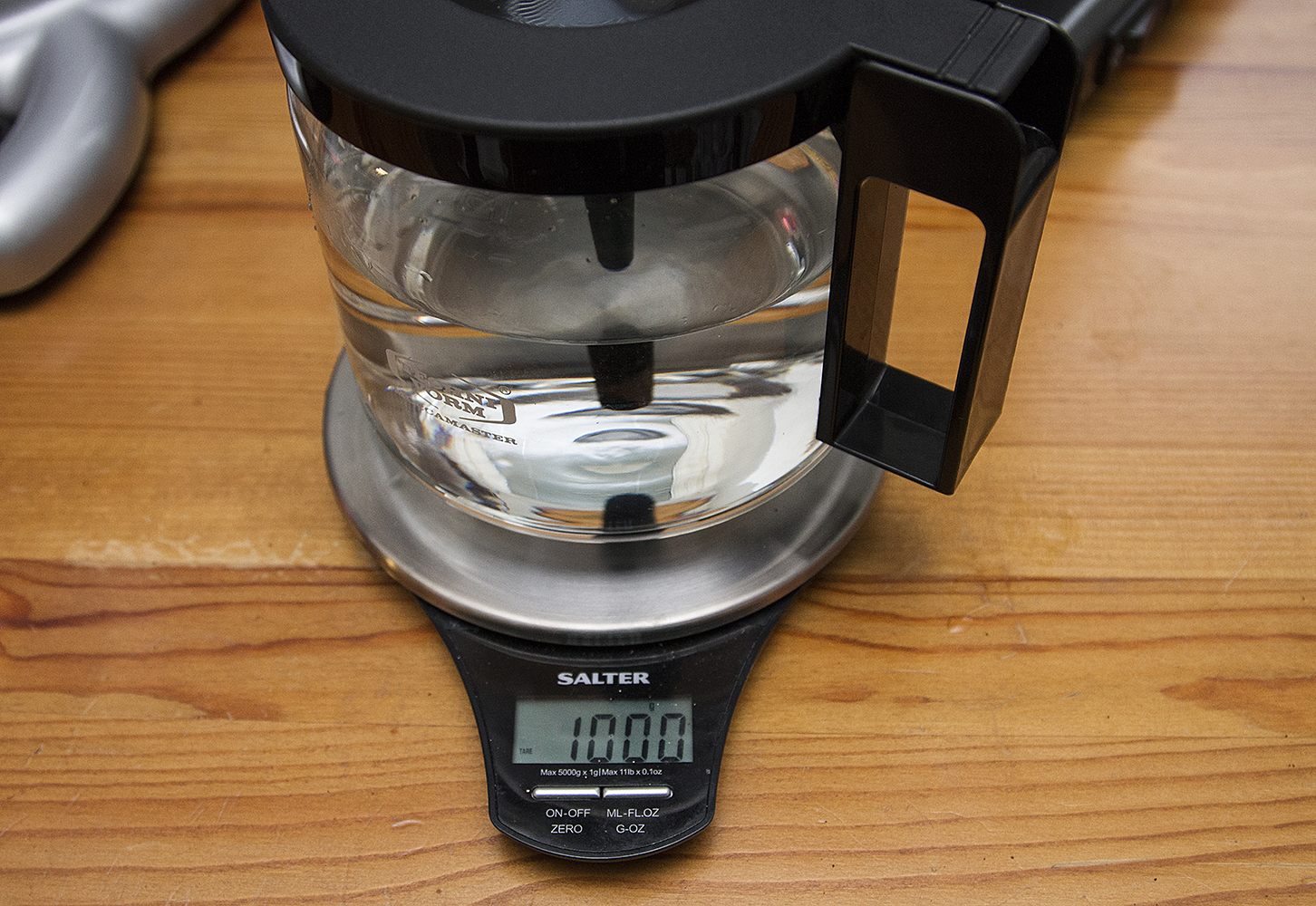 The reason why this was a bit of a futile exercise in my case is because of the bloody Technivorm, since it’s quite nicely made, has a scale on the reservoir actually correlates to reality, so if you fill its 1,25 litre reservoir to 8 out of 10 cups, you’ll actually have exactly 80% out of 1250 ml, i.e. one litre. The sodding bastards that made it even put a helpful 1/1 litre mark there to tell you this fact if you’d bothered to look closely enough.