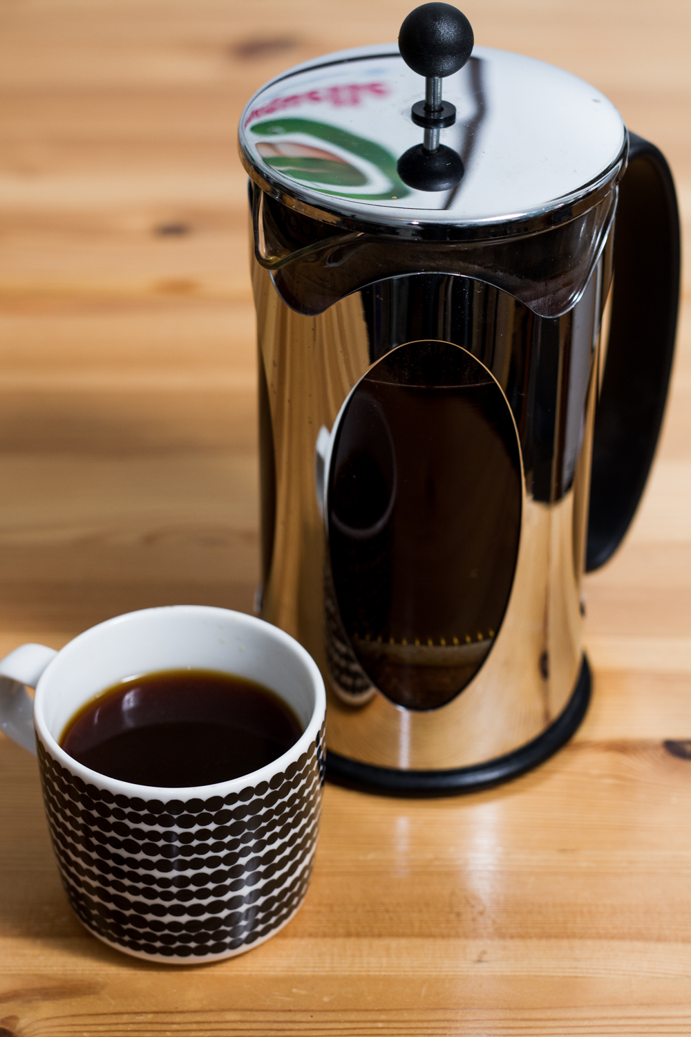 The make and model of you French press is less important than you might think, but you want a pot that’s made out of heat resistant glass so that it doesn’t break due to thermal shock. Here borosilicate glass is really good. You also want something that’s reasonably well made, so that it’ll stand up to years of use. Try to avoid the really cheap models if you can, I’ve had a couple where the plastic holder of the glass pot has broken of after a couple of months of use.
